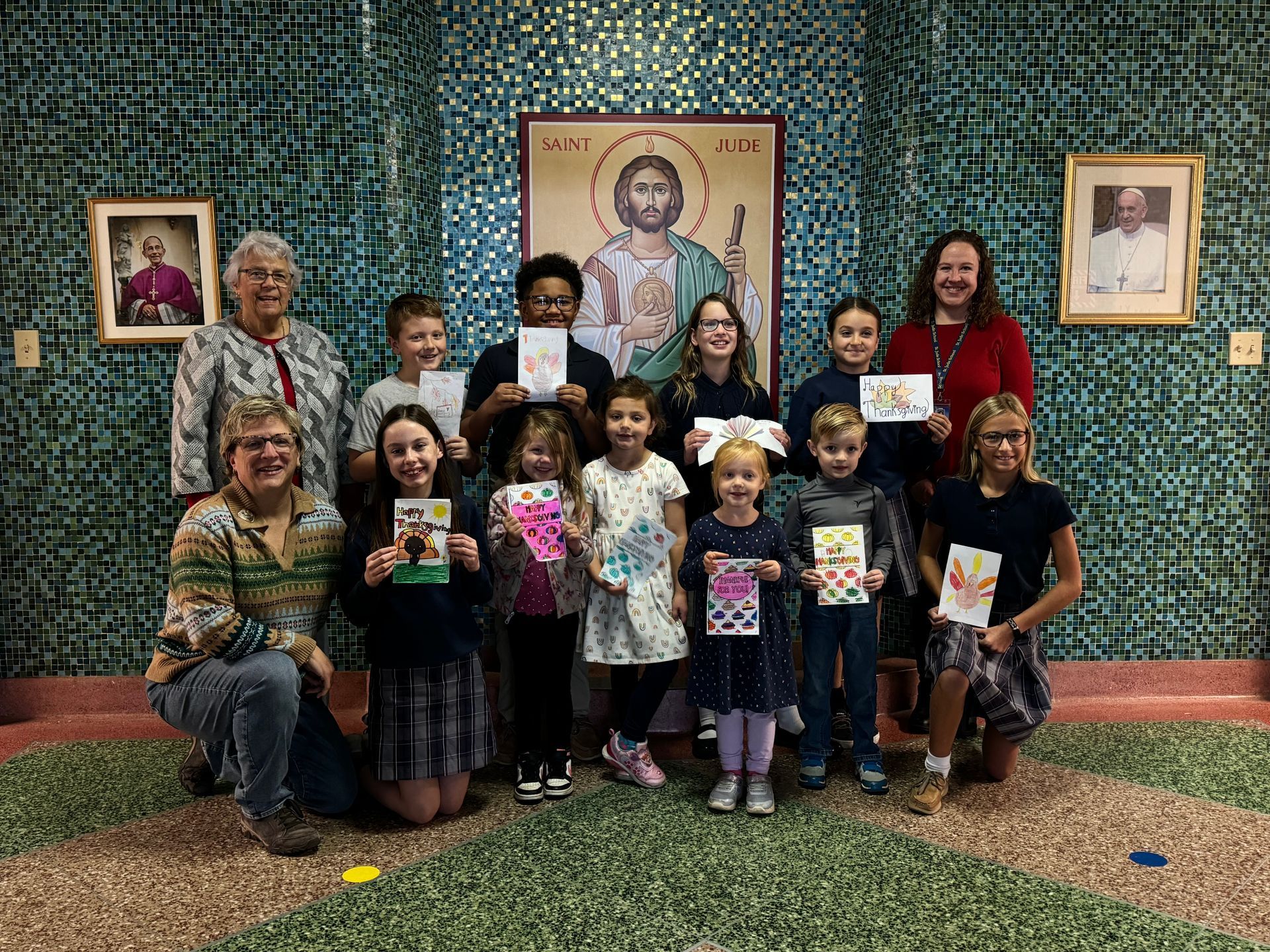 While this year’s photos highlight the wonderful students of Saint Jude, Saint Luke, and Our Lady of Peace, all of our schools participated in making this Thanksgiving extra memorable for those attending the annual dinner. Every school’s participation is vital, and together, we are showing what it means to be a community united by faith and service. Together, the students created over 1,000 cards for the Sisters of Saint Joseph Thanksgiving Dinner.