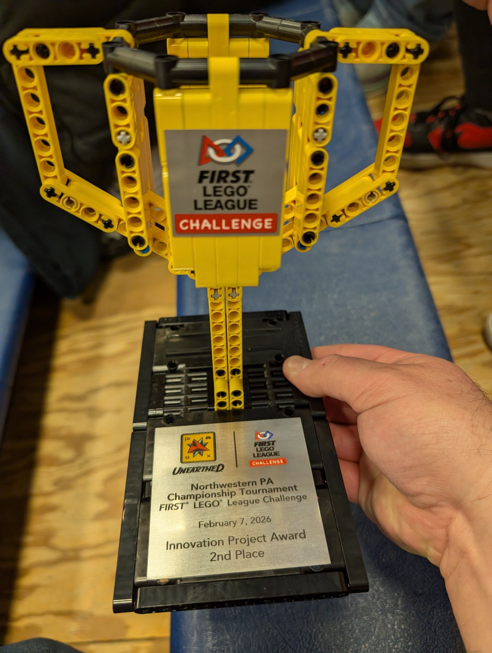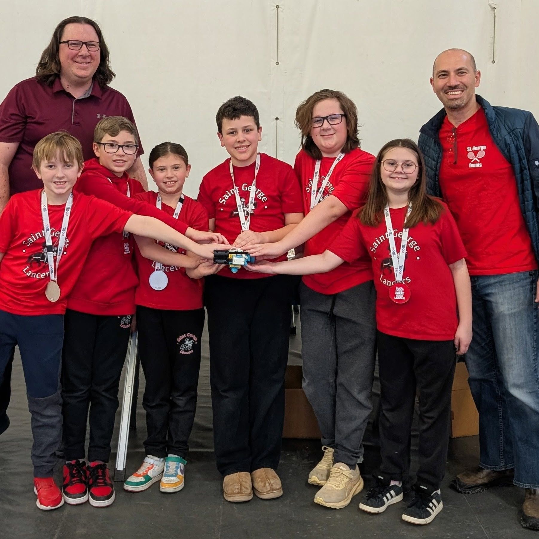 Just a few tables over, Saint George’s LEGO Lancers were having a standout day of their own. Made up mostly of fifth- and sixth-graders, the Lancers earned second place for their Innovation Project, taking home a LEGO trophy that will soon find its place in the campus's display case. Their robot performance was equally impressive, tying for 8th place overall and scoring 230 points.