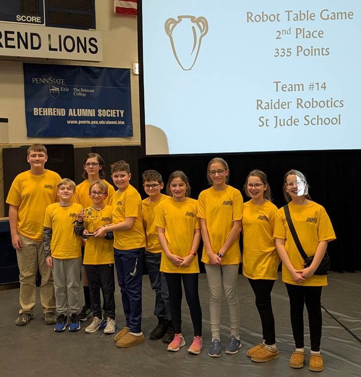 Inside a gym buzzing with excitement, two Erie Catholic teams—Saint Jude’s Raider Robotics and Saint George’s LEGO Lancers—joined 25 other groups from across the region to compete in FIRST LEGO League’s regional tournament. The energy was contagious as students huddled over their robot tables, coaches leaned in with encouragement, teams cheered loudly for one another, and kindness flowed as freely as the creativity on display.